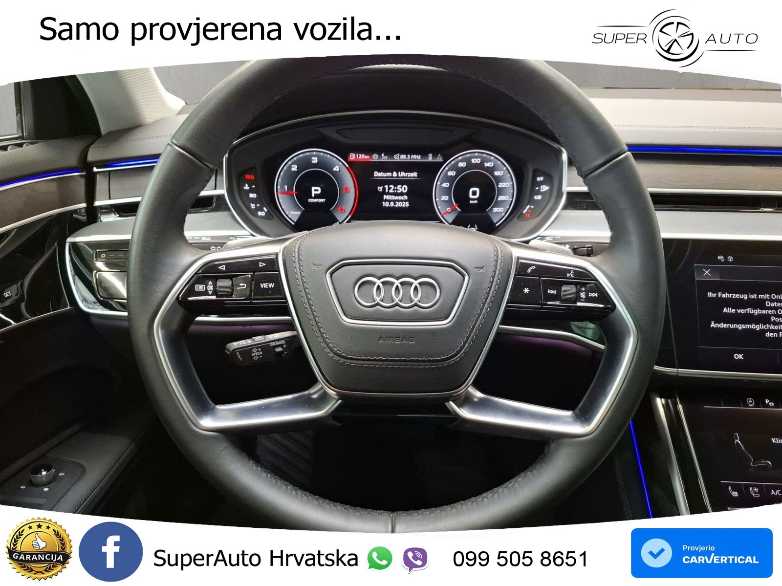 Auto je u vrhunskom stanju, sa servisnom knjigom. Od opreme: ➡️ACC - Adaptivni tempomat ➡️Ambijentalna rasvjeta ➡️Android Auto ➡️Apple CarPlay ➡️Grijano vjetrobransko staklo ➡️Električna vrata prtljažnika ➡️Asistent za duga svjetla ➡️Head-Up Display ➡️Kožni volan ➡️LED prednja svjetla ➡️Zračni ovjes ➡️Masaža sjedala ➡️Velika navigacija ➡️Pomoć pri kočenju u nuždi ➡️Panorama ➡️Centralno zaključavanje bez ključa (Keyless) ➡️Ventilacija sjedala ➡️Grijanje sjedala sprijeda i straga ➡️Pomoć pri održavanju trake ➡️Parking grijač ➡️Start/stop sustav ➡️Upozorenje mrtvog kuta ➡️Virtual cockpit ➡️Kamera 360° Vozilo se nalazi u Njemačkoj i za nekoliko radnih dana može biti u Hrvatskoj spremno za preuzimanje. Za sva naša vozila dajemo garanciju 1g. ➡️GARANCIJA 12MJ ➡️Cijena je do registracije i ne plaća se prijenos CIJENA: 90.500,00€ s PDV-om Mogućnosti plaćanja: - Gotovinska transakcija - Leasing (moguće bez učešća) - Staro za novo (redovna cijena) Uvozimo vozila i po želji. Pronalazimo vozilo koje Vam odgovara ili ako ste već sami našli vozilo koje želite da vam uvezemo i riješimo papire, obratite nam se s povjerenjem.;